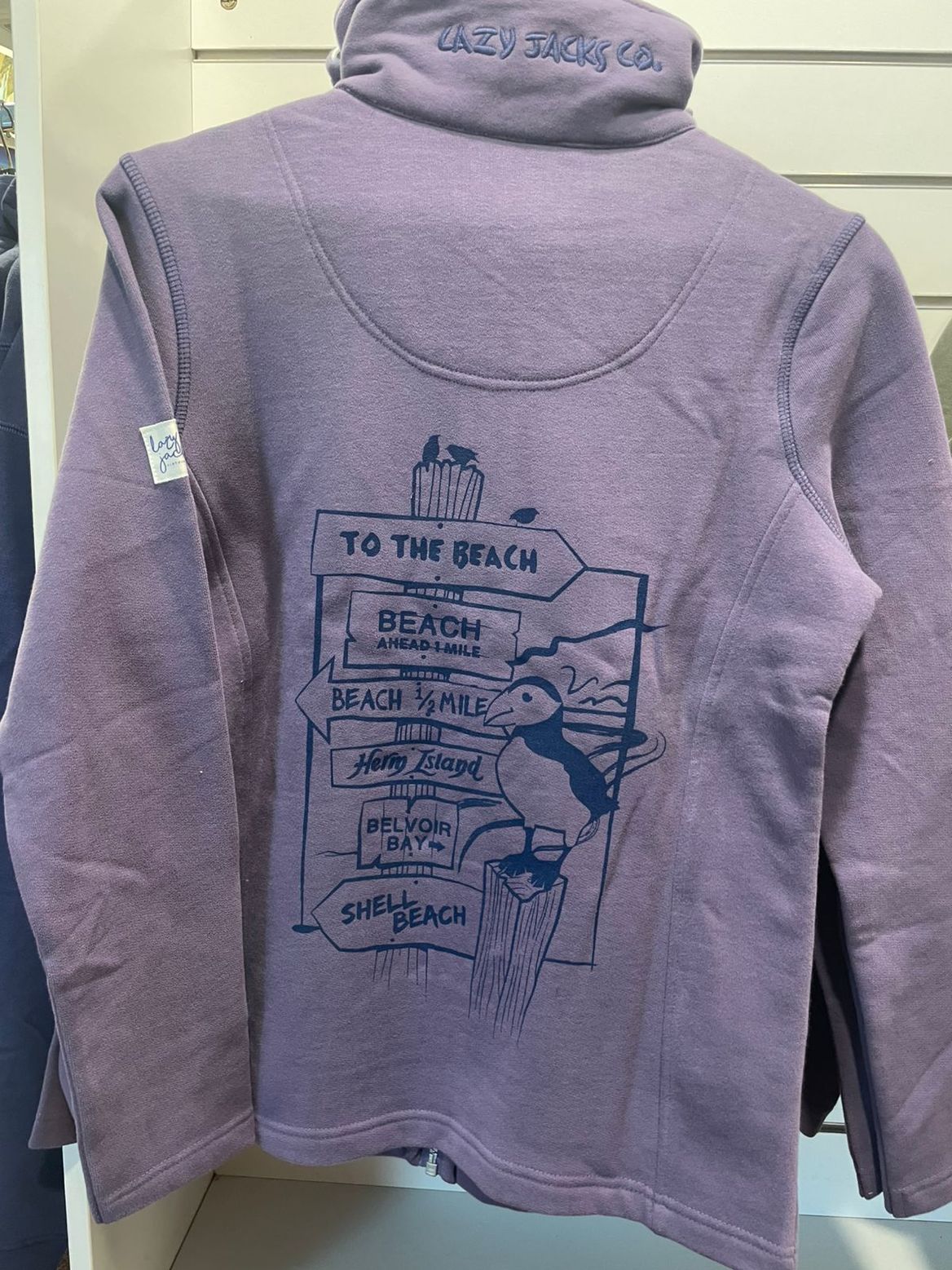 Herm Island Lazy Jacks bespoke sweatshirt. Signpost print on back.